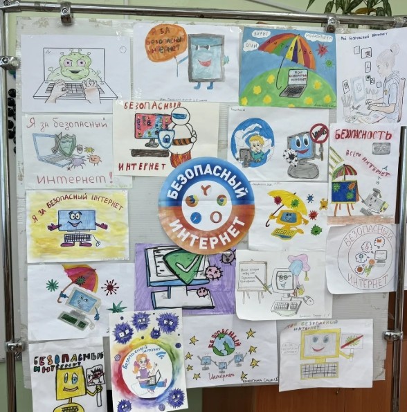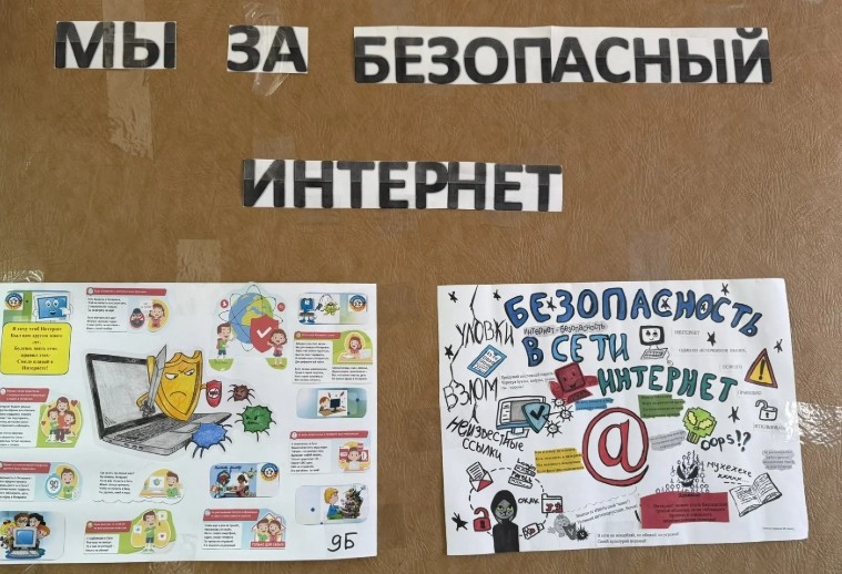Ученики 8 классовна уроке информатики изучили в игровой форме, какие потенциальные риски могут быть при использовании Интернета, путях защиты от сетевых угроз, проблеме Интернет-зависимости, о правилах поведения в социальных сетях, о том, что Интернет вызывает привыкание. К концу урока создали небольшой стенд «Мы за безопасный Интернет», где рассказали о правилах поведения в сети.